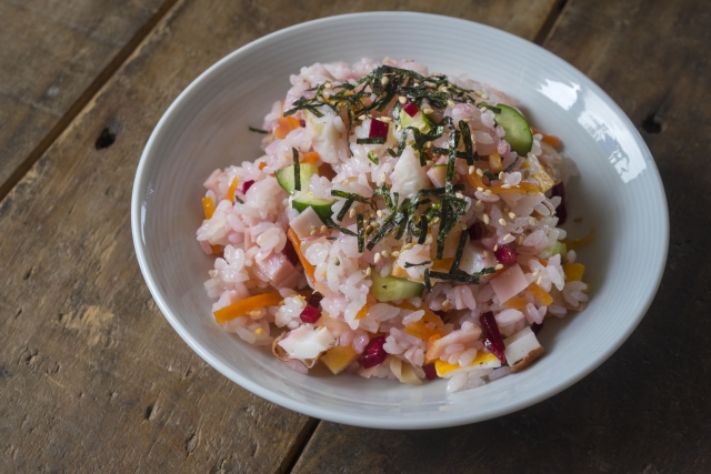 kcal男子ごはんの炒り豆腐のちらし寿司のレシピ。