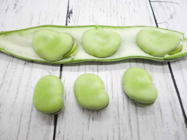 - 生のそら豆の薄皮をむいて、粗みじん切りにする。