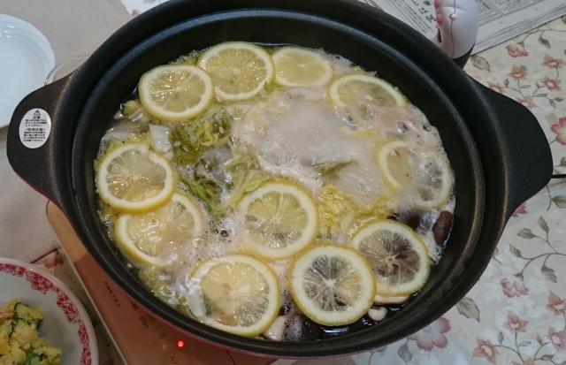 - ふつふつしてきたら鶏団子、豚バラ肉、お好みの野菜を入れて加熱
