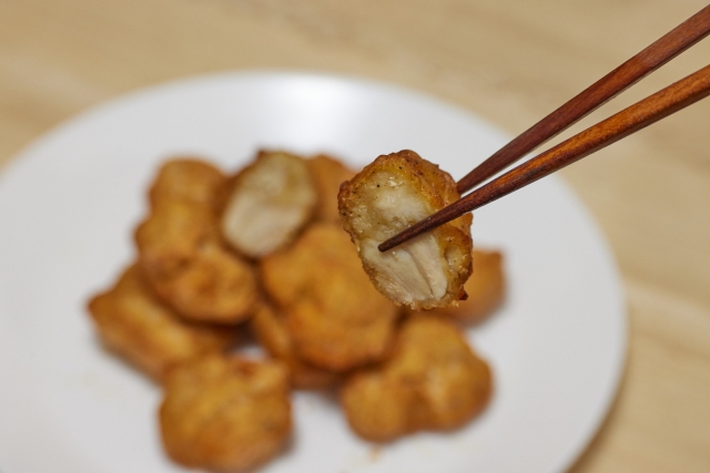 - 180℃の揚げ油で1分カラッと揚げて、塩を振って完成。