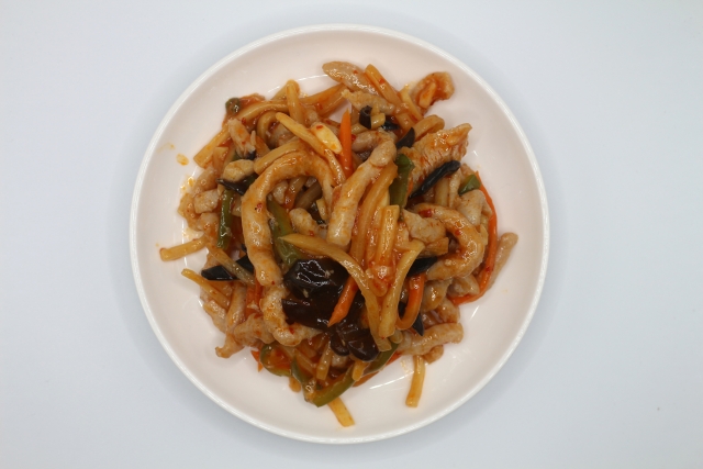 • 固まってくるので絶えず混ぜ続けて、一口大に切って氷水に取る。