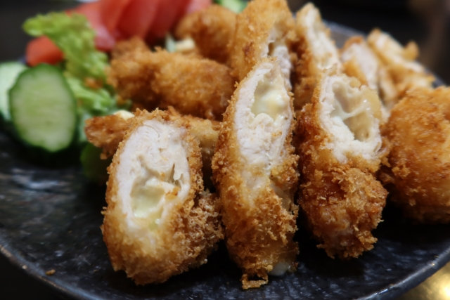 - フライパンにバターを入れ、(4)のパンを置き、ふたをして弱火で焼く。こげ目がついたらひっくり返して、ハムとチーズを上にのせ、ふたをしてチーズがとけるまで弱火で焼く。