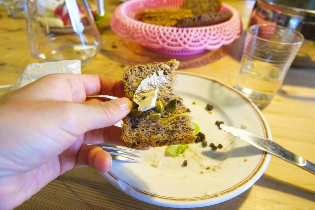 ①鼻の小鼻の脇と頬骨のちょうど中間にある、頬骨の溝のところをほぐす。