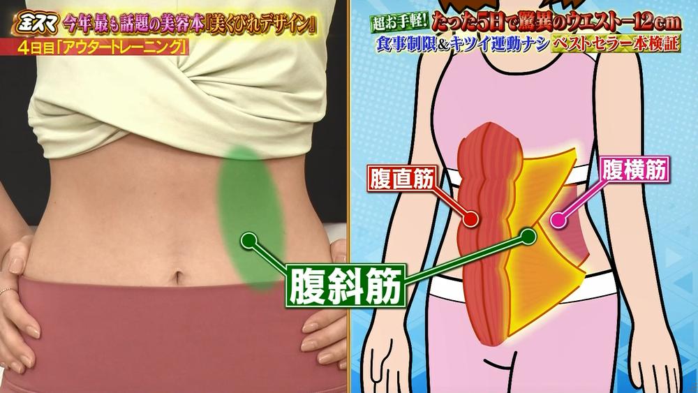 11月18日の中居正広のキンスマこと中居正広の金曜日のスマイルたちへでは、今年最も話題の美容本の「美くびれデザイン」の著者の廣田なおさんが、三船美佳さん、キンタローさん、納言薄幸さん、鈴木奈々さんにエクササイズのやり方を教えてくれましたので紹介します。