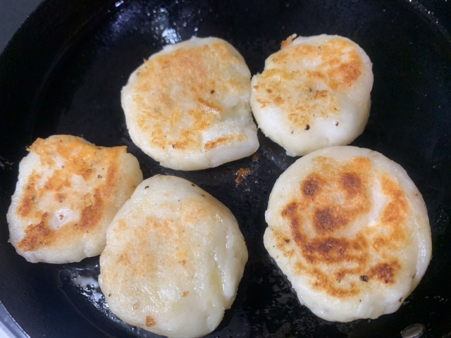 - お肉の厚さを整えてフライパンで焼く、焼き色がついたらひっくり返して蓋をして3分ほど弱中火で蒸す。