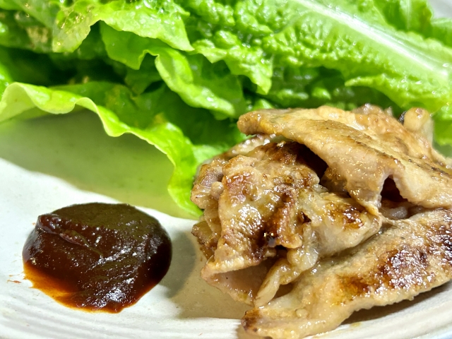 - 小松菜の茎の部分を加え、火が通ったら葉の部分も加える。